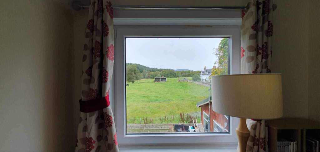 The property sits 6 miles to the west of Garve, it is advised to have transport as the property is very rural with only two buses a day & the nearest train station is at Garve. Please look at the drone video which shows exactly where we are are the surrounding countryside. The accommodation sleeps 4 people in 2 bedrooms & has a family shower bathrooms. ~The beds are a 5ft King-sized beds or and single size adult bunk beds. All the beds have coverless duvets that are washed after every guest ensuring we provide the most fresh & clean experience possible. There are a selection of bath toiletries supplied along with a bathrobe & slippers for your enjoyment. There are rear grounds that go down to the banks of the River Black Water where guests can sit & enjoy the peaceful clam of the river & the beauty of the surrounding mountains, or be served a meal from the bar. The accommodation is self-catering but breakfast is provided (selection of cereals, bread, jam or marmalade, teas, coffee, butter and milk) with an open plan kitchen lounge/diner with a leather chesterfield suite. A Smart TV is in the lounge with access to Netflix and Disney+, guests can load their own accounts onto the smart TV. The kitchen is fully equipped with coffee machine, air fryer, cooker, kettle, microwave and dishwasher. There is central heating in the property ensuring a snug experience even in the coldest of months. There is a laundrette with coin operated washing machines & tumble dryers to deal with the heaviest of demands.