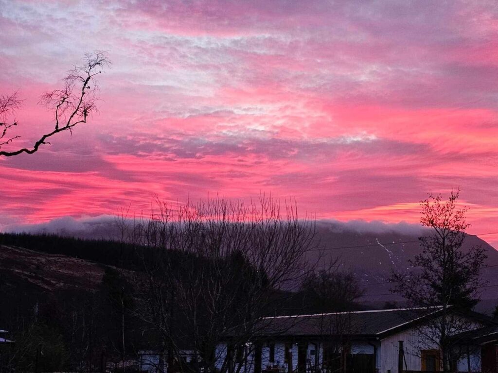 The property sits 6 miles to the west of Garve, it is advised to have transport as the property is very rural with only two buses a day & the nearest train station is at Garve. Please look at the drone video which shows exactly where we are are the surrounding countryside. The accommodation sleeps 5 people in 3 bedrooms & has two shower bathrooms. one of which is ensuite to the single bedroom, the other is a family bathroom. The beds are either 5ft King-sized beds or 3ft single beds. All the beds have coverless duvets that are washed after every guest ensuring we provide the most fresh & clean experience possible. There are a selection of bath toiletries supplied along with a bathrobe & slippers for your enjoyment. There are rear grounds that go down to the banks of the River Black Water where guests can sit & enjoy the peaceful clam of the river & the beauty of the surrounding mountains, or be served a meal from the bar. The accommodation is self-catering but breakfast is provided (selection of cereals, bread, jam or marmalade, teas, coffee, butter and milk) with an open plan kitchen/diner and a separate lounge. A Smart TV is in the lounge with access to Netflix and Disney+, guests can load their own accounts onto the smart TV. The kitchen is fully equipped with coffee machine, air fryer, cooker, kettle, microwave and dishwasher. There is central heating in the property ensuring a snug experience even in the coldest of months. There is a laundrette with coin operated washing machines & tumble dryers to deal with the heaviest of demands.